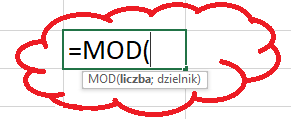Komenda MOD posiada dwa parametry. Są to liczba oraz dzielnik. Funkcja zwraca resztę z dzielenia liczby przez dzielnik. Czym jest reszta z dzielenia zakładam, że wiecie?
