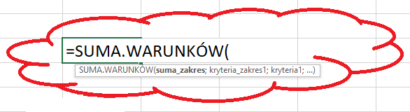 Ta komenda pozwala na sumowanie komórek, które znajdują się w tych samych wierszach co komórki posiadające jakąś, określoną wartość.