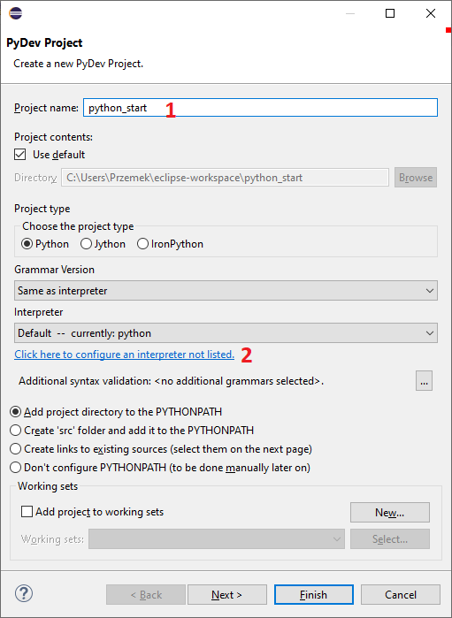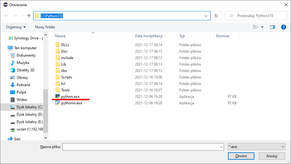 i wskazujemy lokalizację pliku python.exe. Może to wyglądać tak: