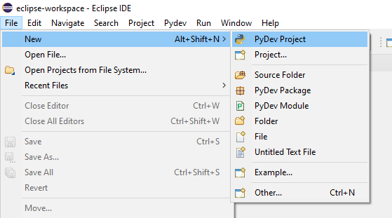 Wybieramy New -> PyDev Project