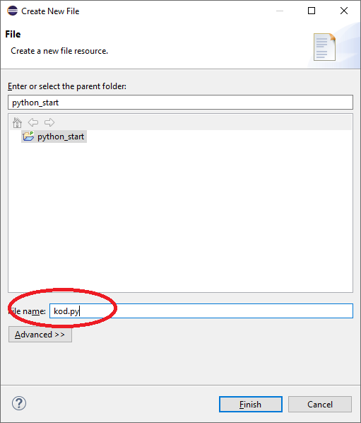 Podajemy nazwę wraz z rozszerzeniem .py.