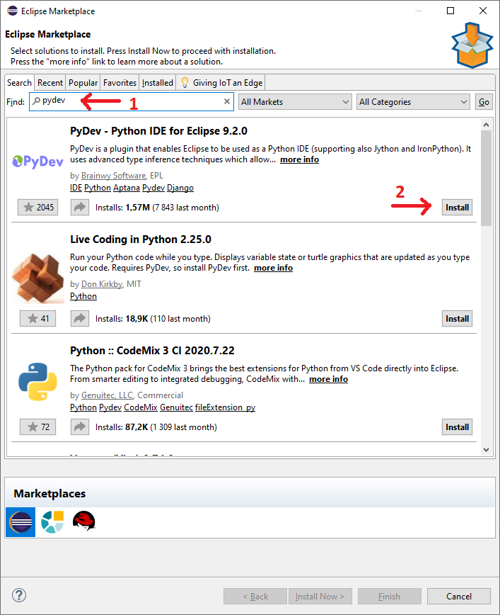 a nastęnie wyszukujemy PyDev oraz go instalujemy.