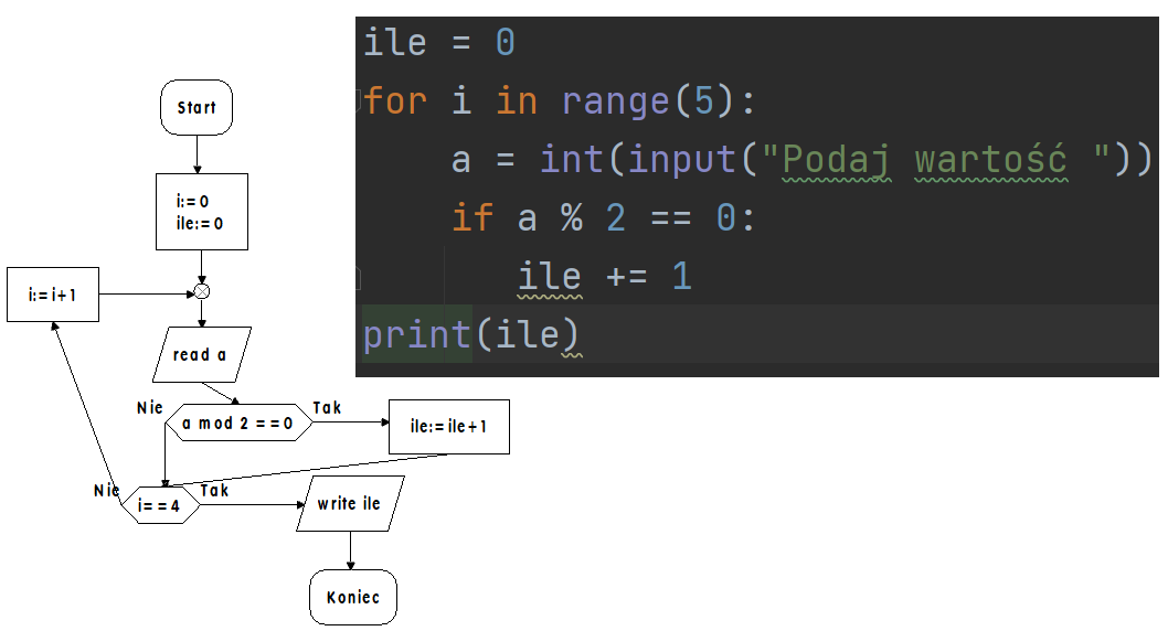 Przykład użycia instrukcji warunkowej if