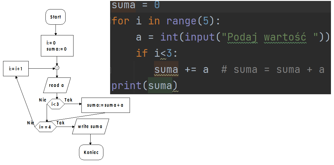 WAŻNE: W języku Python wcięcia tworzą bloki w strukturze programu podobnie jak nawiacy klamrowe w C++.